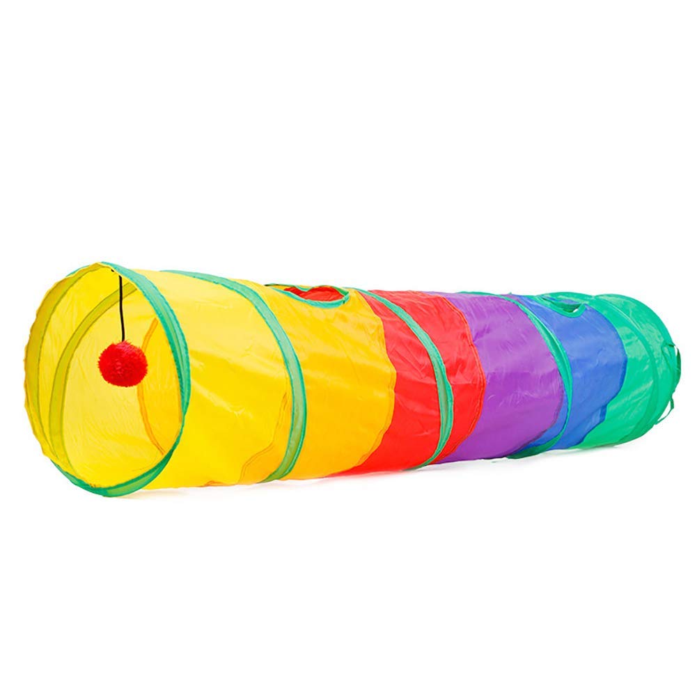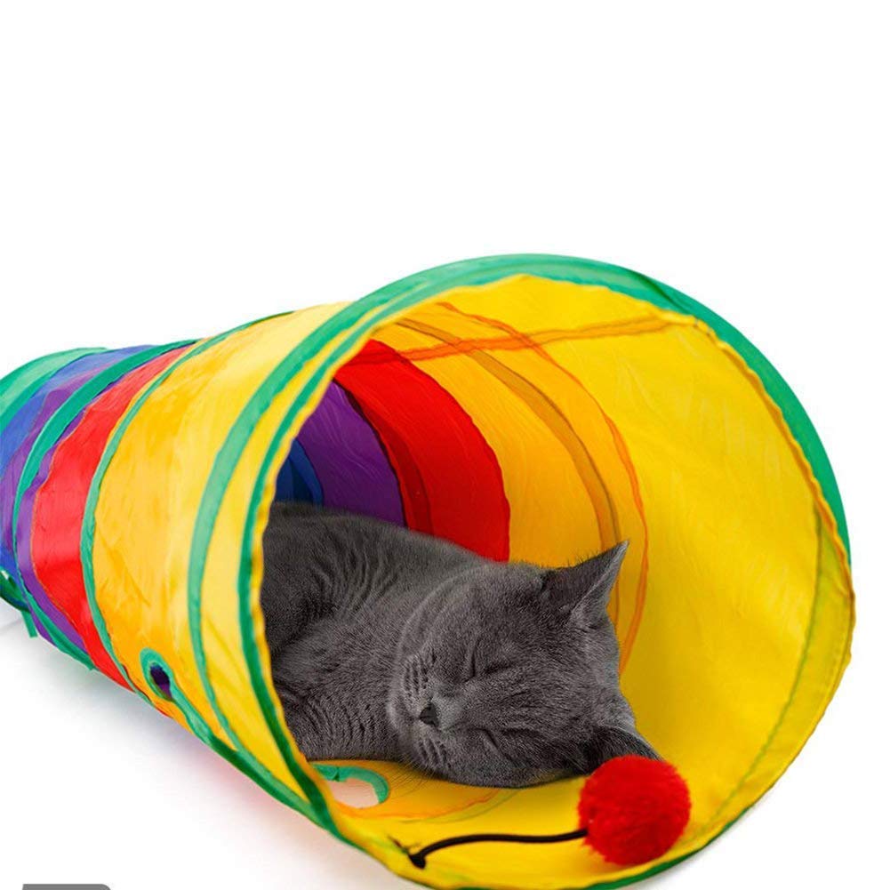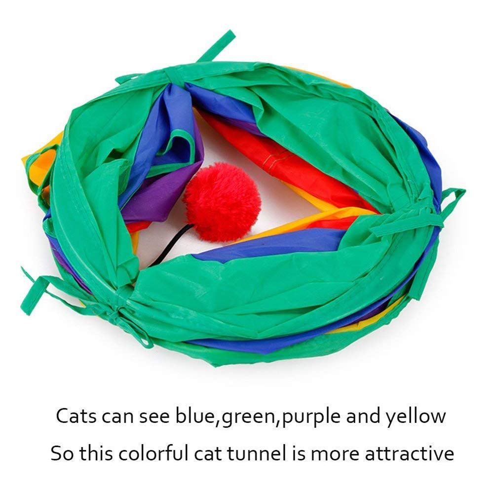 - SPACIOUS: Foldable tunnel cat toy has spacious dimensions measuring 45 inches long tunnel and the large room may accommodate several cats or bunnies for interactive games. Pet tunnels with toy balls can keep your pet entertained.